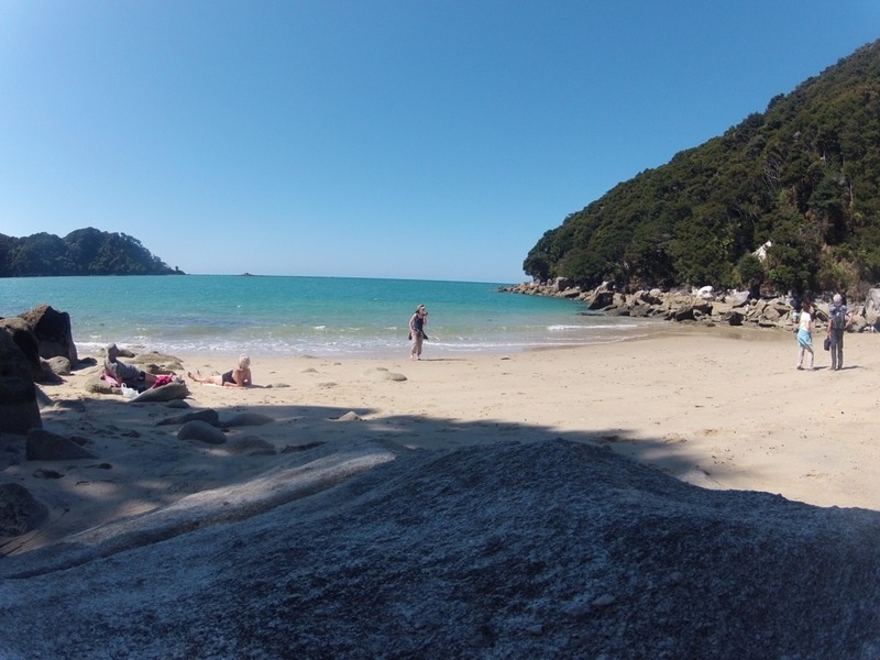 Mit dem Wassertaxi ging's weiter zur Torrent Bay. Von da startet unsere Wanderung. Es geht entlang der Küste auf dem Able Tasman Track. Eine schöne Wanderung durch den Regenwald. Am Endpunkt der Wanderung warteten wir mit Anderen auf des letzte Wassertaxi des Tages zurück zum Ausgangspunkt.