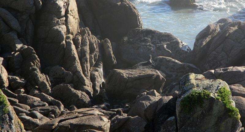 Kurz vor Westport am Cape Foulwind hat sich eine permanente Robbenkolonie niedergelassen. Man kann sie von einem Pfad oberhalb der Klippen beobachten. Da die Sonne schon etwas schräg stand war es gar nicht einfach die schwarzen Felle in den tiefen Schatten der Felsen zu entdecken. Jetzt ein 300mm...
